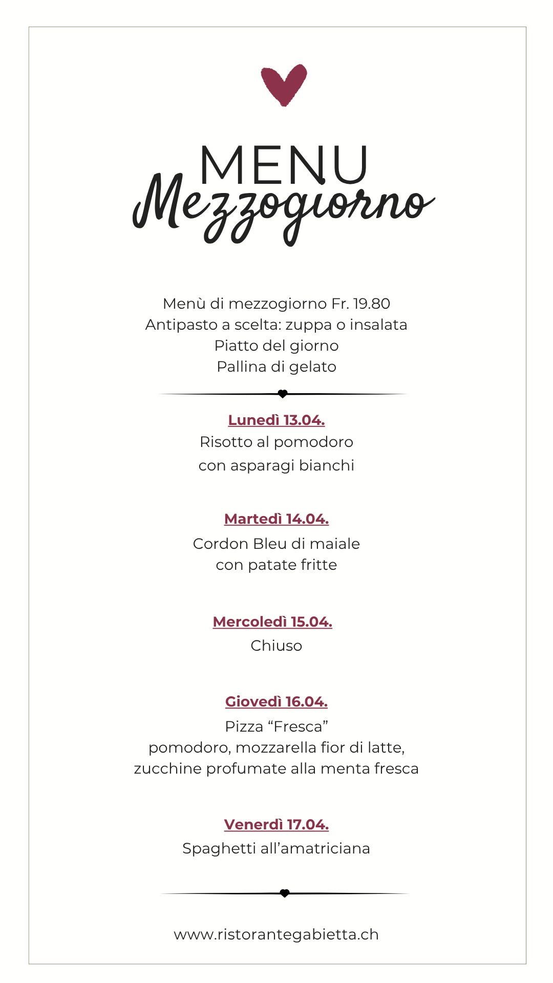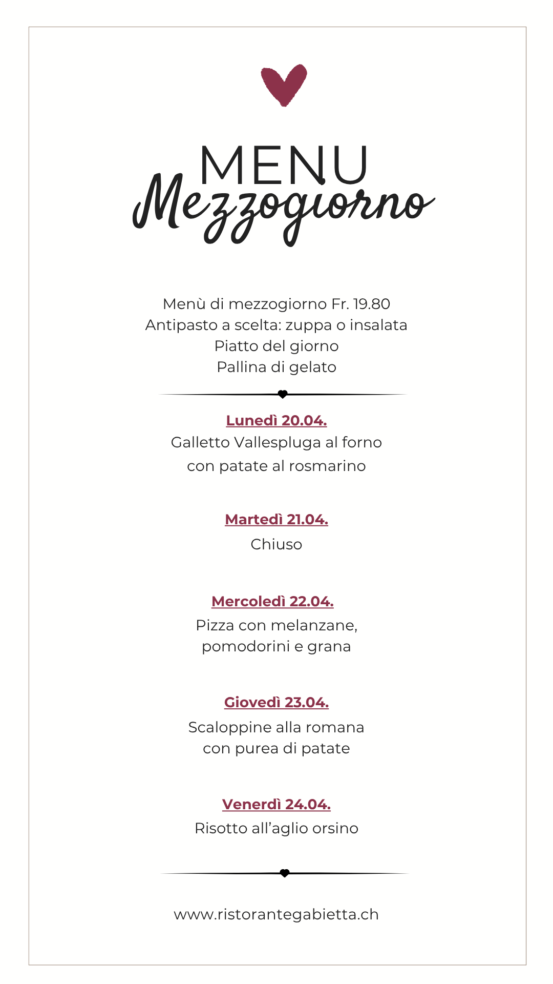 Menù mezzogiorno LU-VE